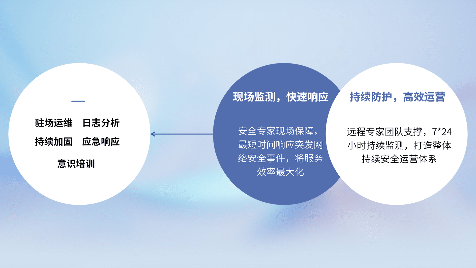 7X24小时持续监测安全事件,保持安全策略有效性,降低资产脆弱性风险,,,,精准拦截黑客攻击,,,,减少被黑客利用的机会,,,第一时间遏制,,降低损失。。